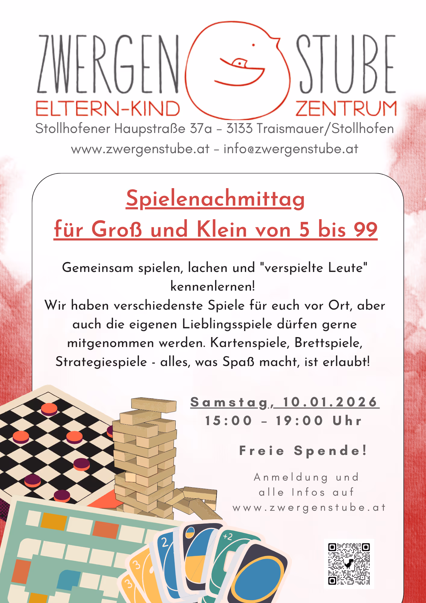 Am 10.01.26 ist unser Spielenachmittag für Groß und Klein! Wir freuen uns auf einen schönen Nachmittag.